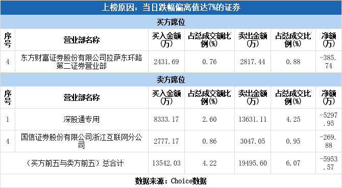 深股通现身龙虎榜,万向钱潮下跌9.90%(10-10)