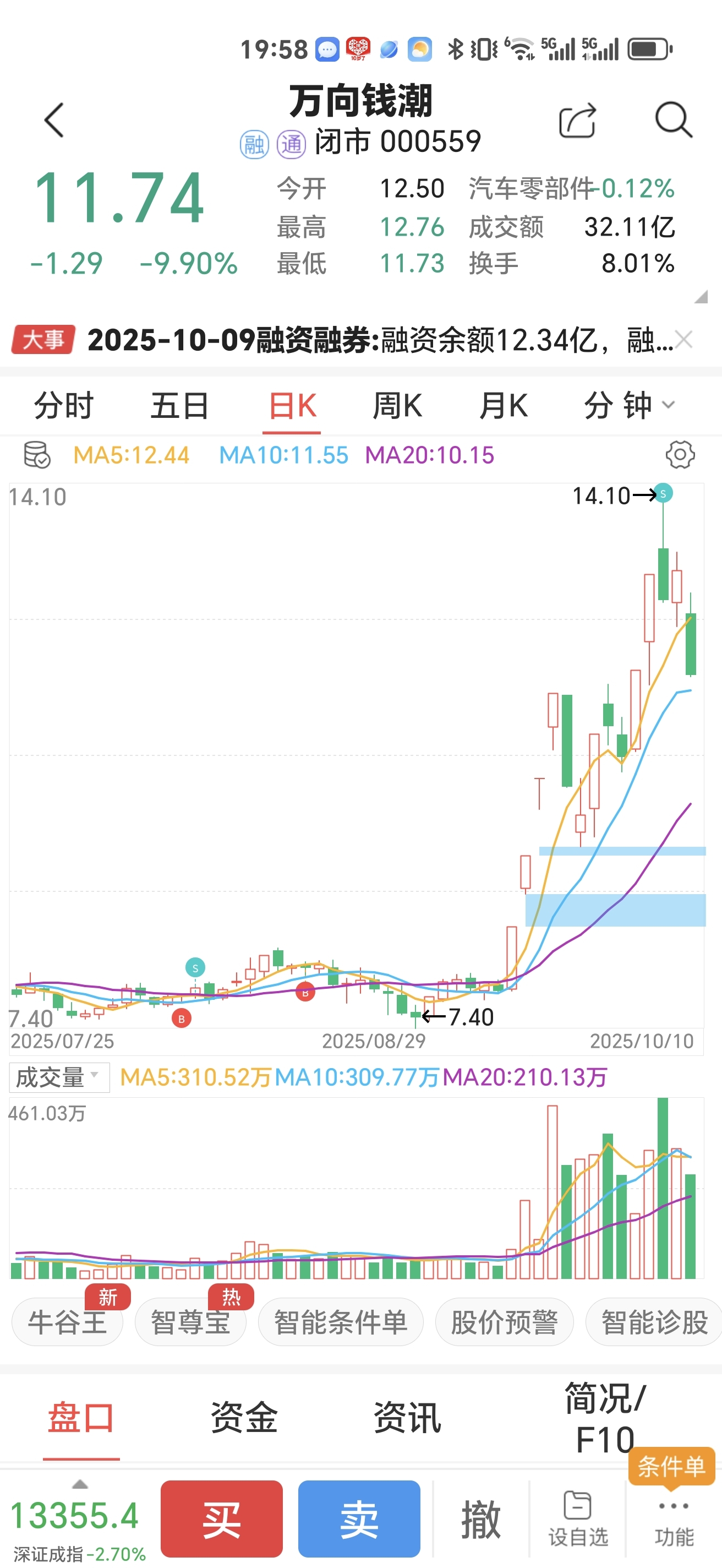 $万向钱潮(SZ000559)$ 节前全仓跑了,接近翻倍利润,知足了。择机再入。