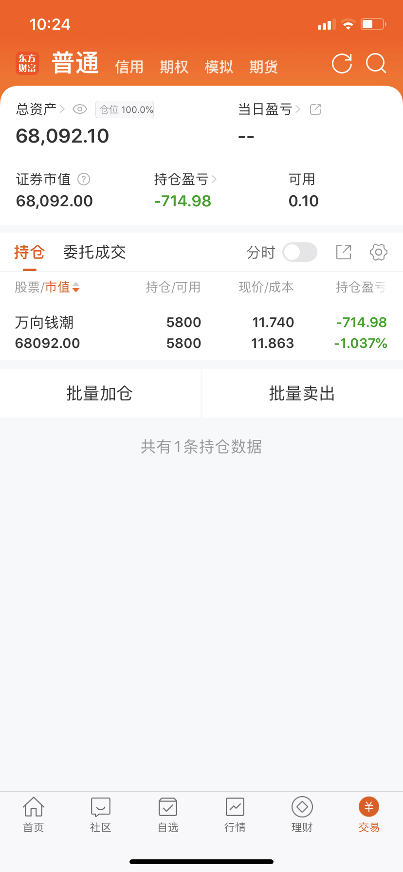 $万向钱潮(SZ000559)$ 全仓玩完,但不会割肉,拿着等吧