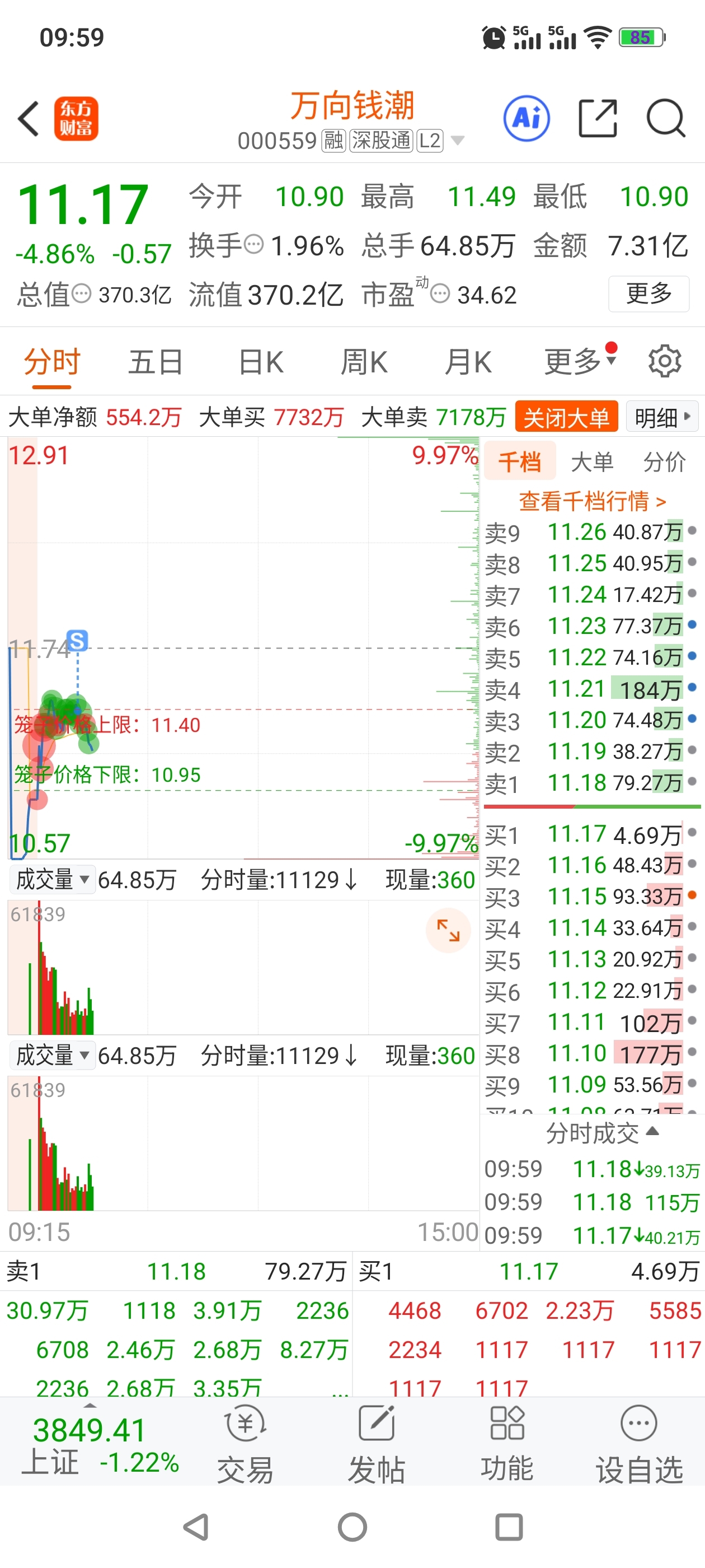 $万向钱潮(SZ000559)$ 亏10个点跑了