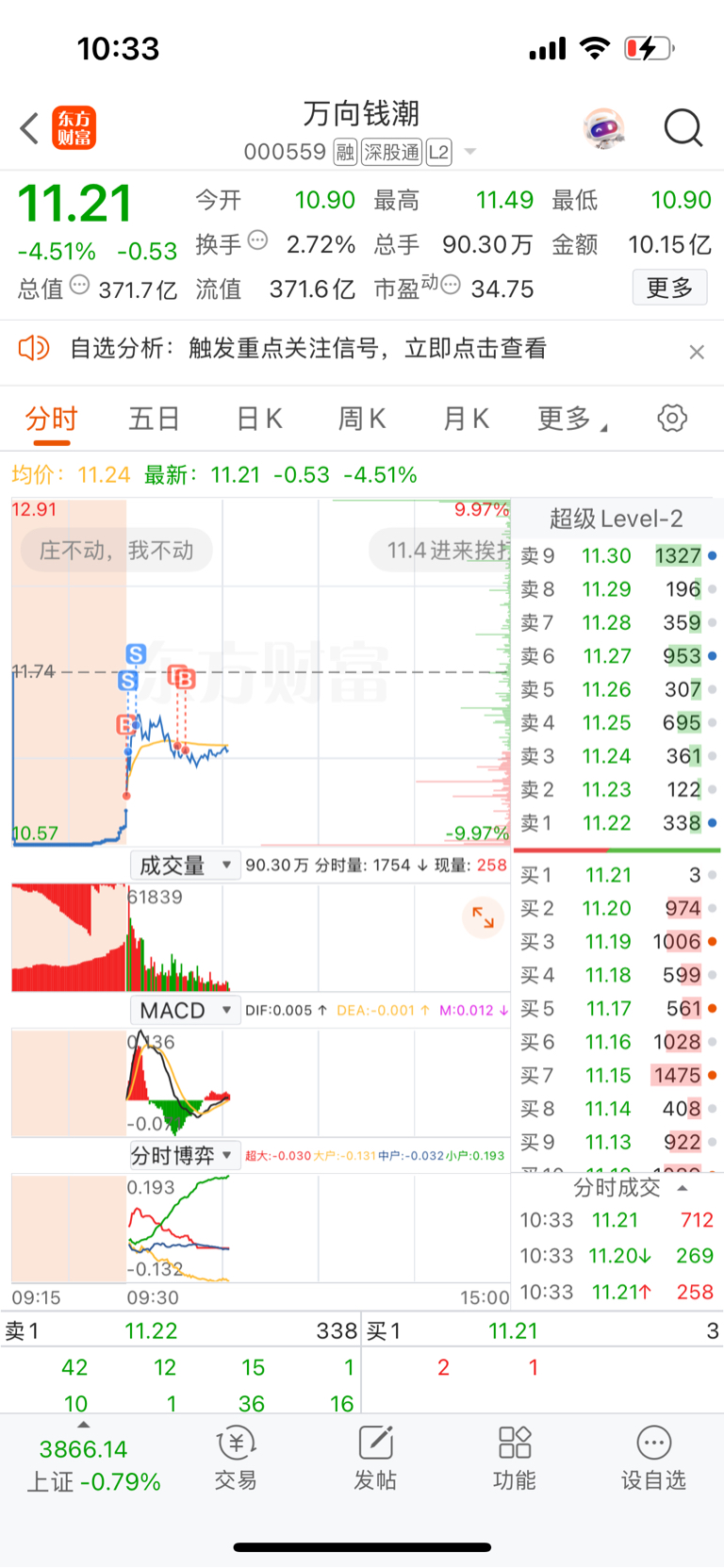 $万向钱潮(SZ000559)$ 真晦气,周五看着以为是带血的筹码,跌停进来的,然后今天往死里T还是绿的,搞什么啊,继续睡觉吧