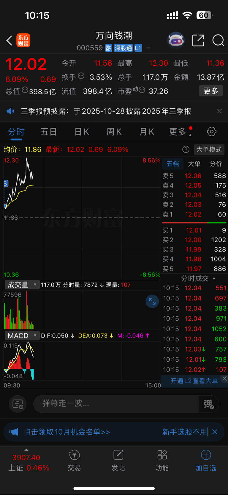 $万向钱潮(SZ000559)$ 你今天大涨的原因是什么