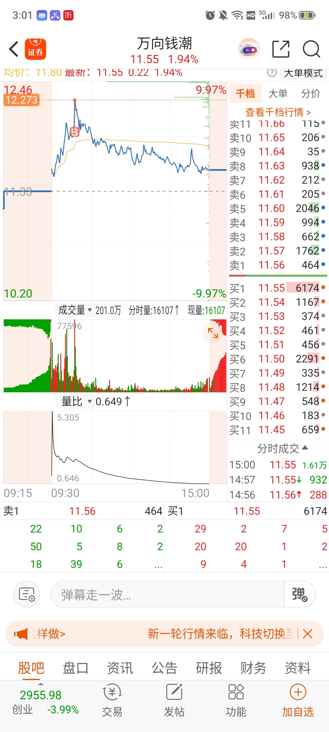 $万向钱潮(SZ000559)$ 555