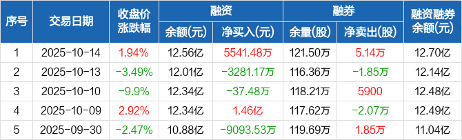 万向钱潮:融资净买入5541.48万元,融资余额12.56亿元(10-14)