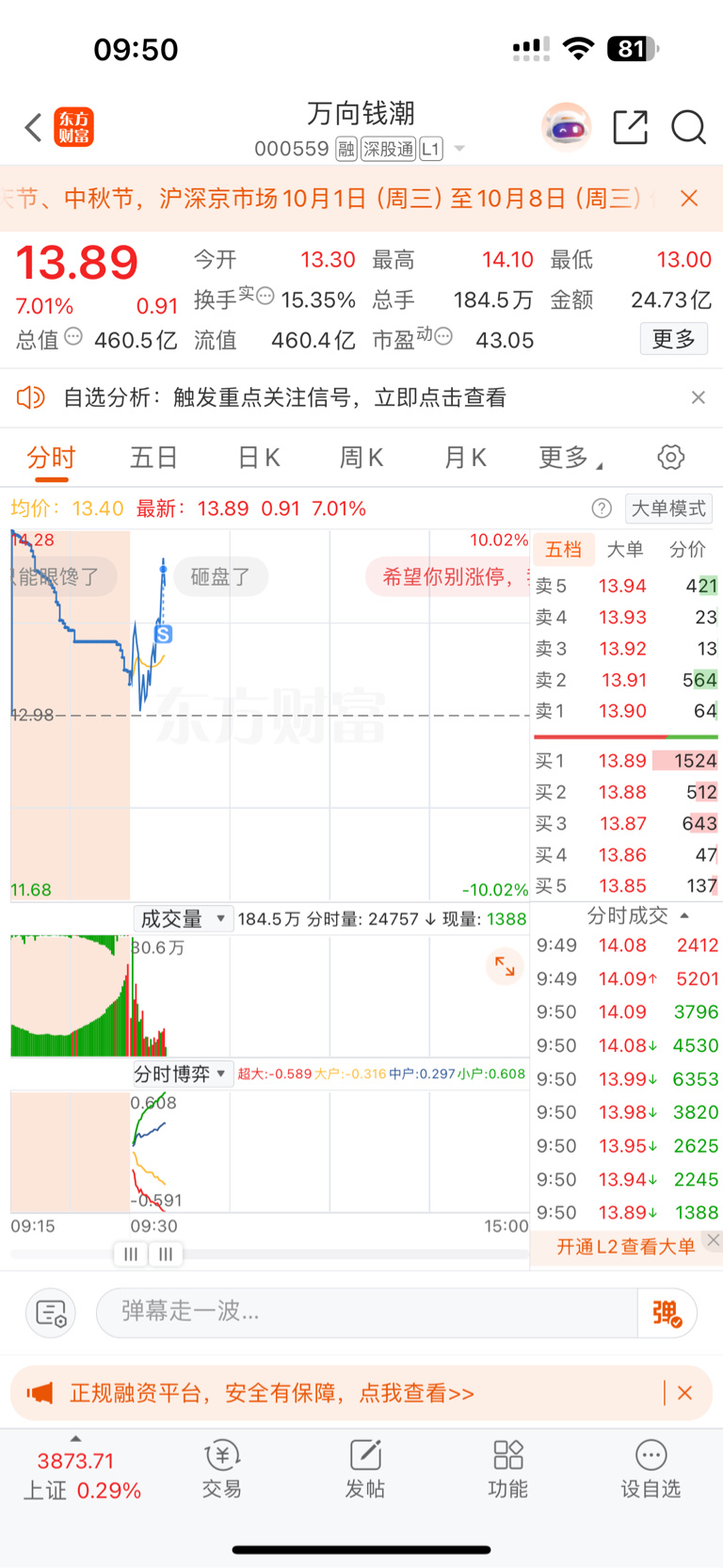 温馨提示: 1.根据《证券法》规定,禁止编造、传播虚假信息或者误导性信息,扰乱证券市场;2.用户在本社区发表的所有资料、言论等仅代表个人观点,与本网站立场无关,不对您构成任何投资建议。用户应基于自己的独立判断,自行决定证券投资并承担相应风险。《东方财富社区管理规定》
