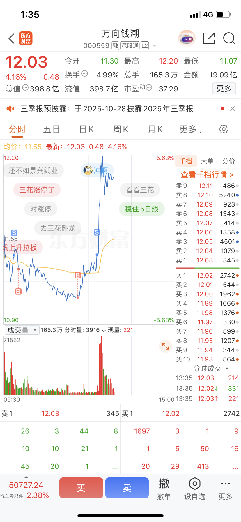 $万向钱潮(SZ000559)$
