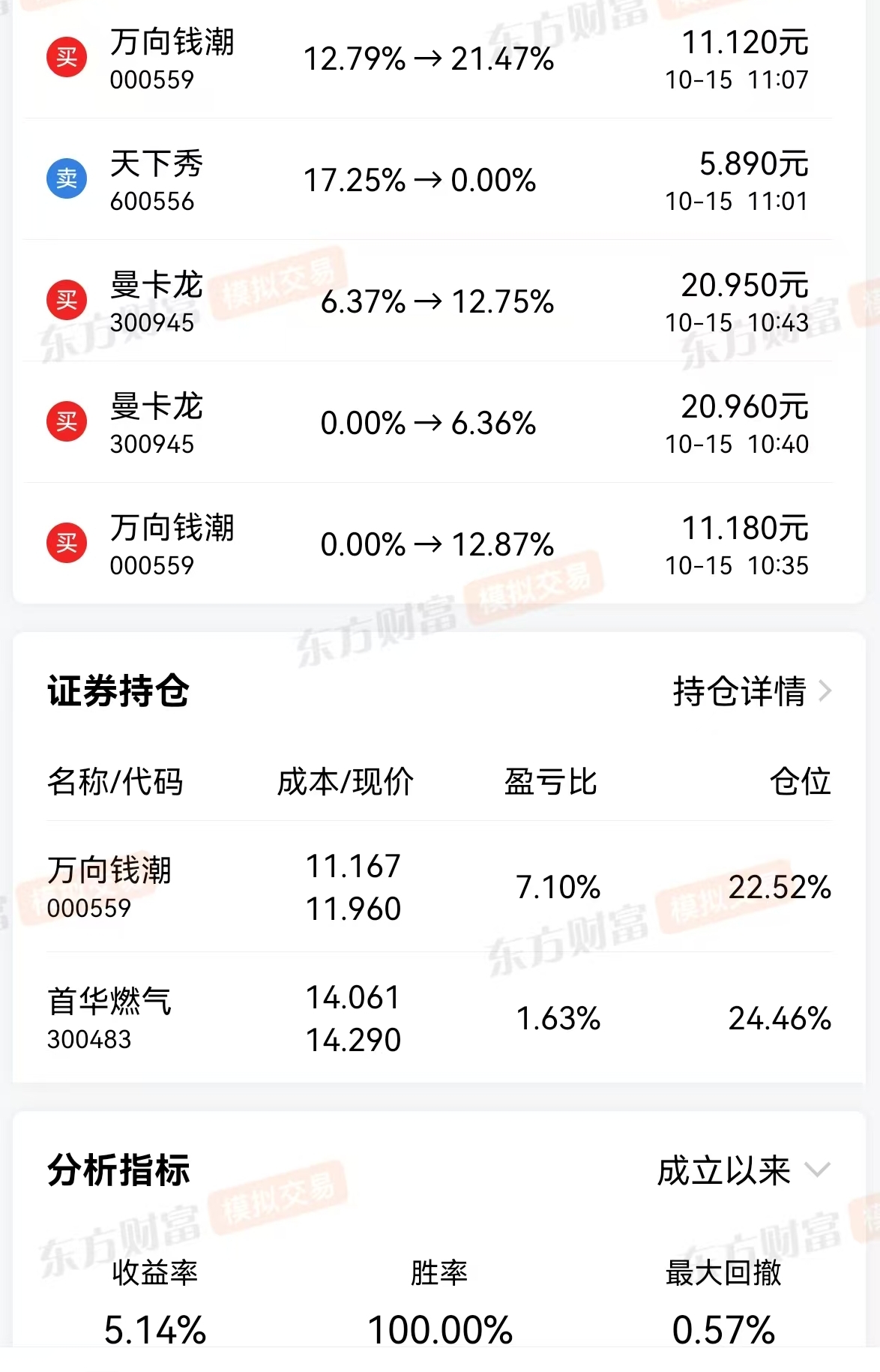 $万向钱潮(SZ000559)$ 再次提示卖出为上,参考策略分享,重点看我的进价和出货价,胜率,出手必有收获,有些人练三五年也做不到