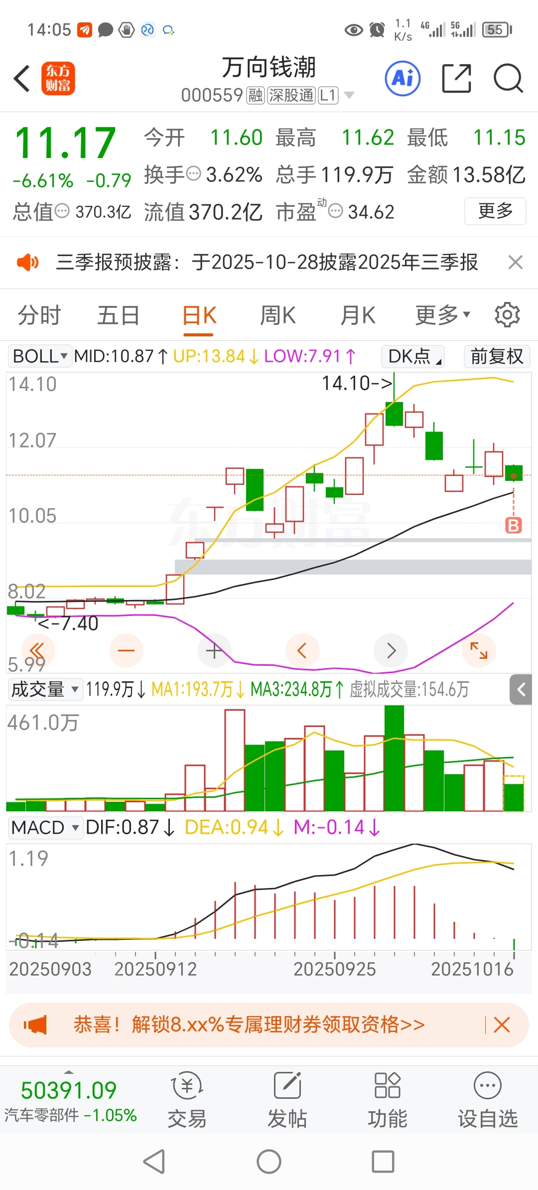 $万向钱潮(SZ000559)$ 博一博,或许能骑上摩托
