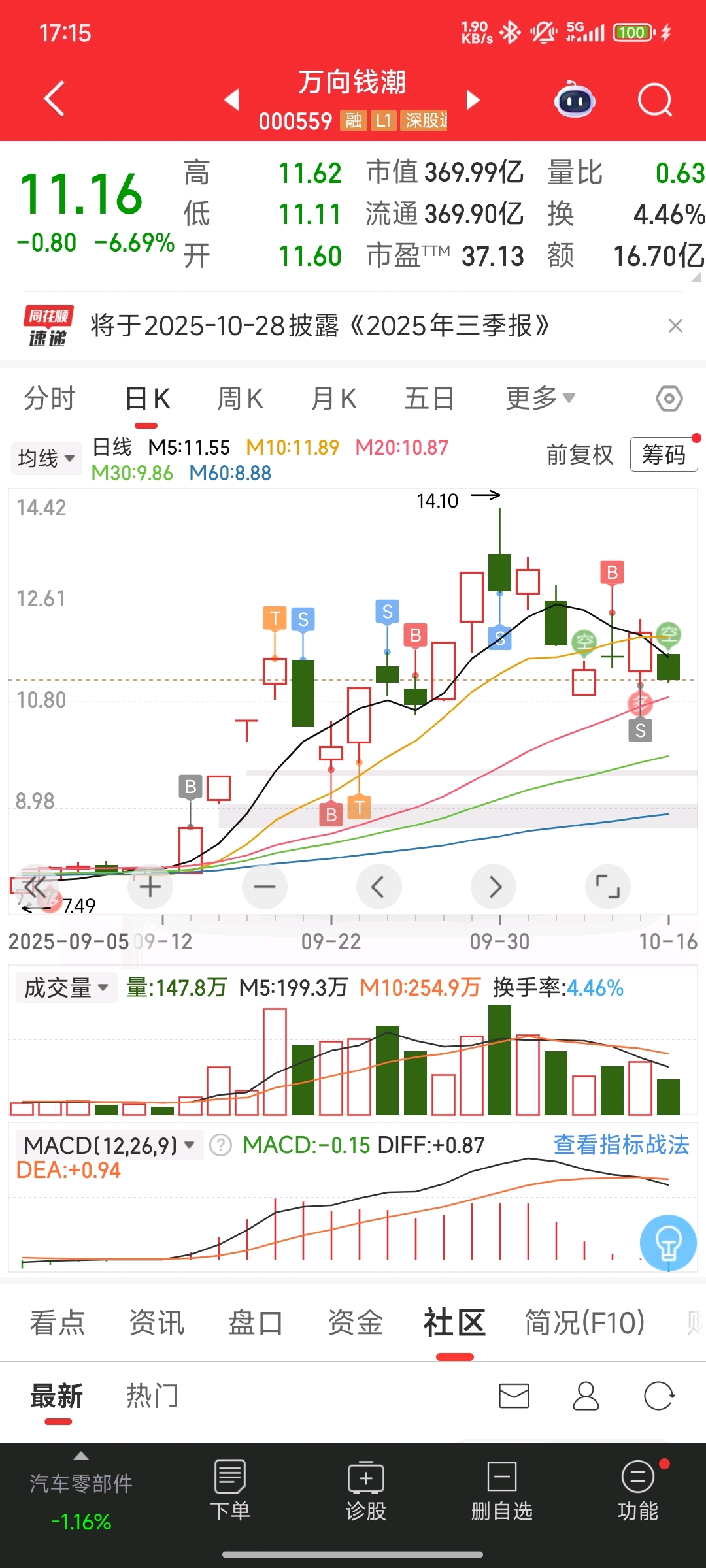 $万向钱潮(SZ000559)$ 万向钱潮的行情彻底结束,鱼尾肉是不打算吃了