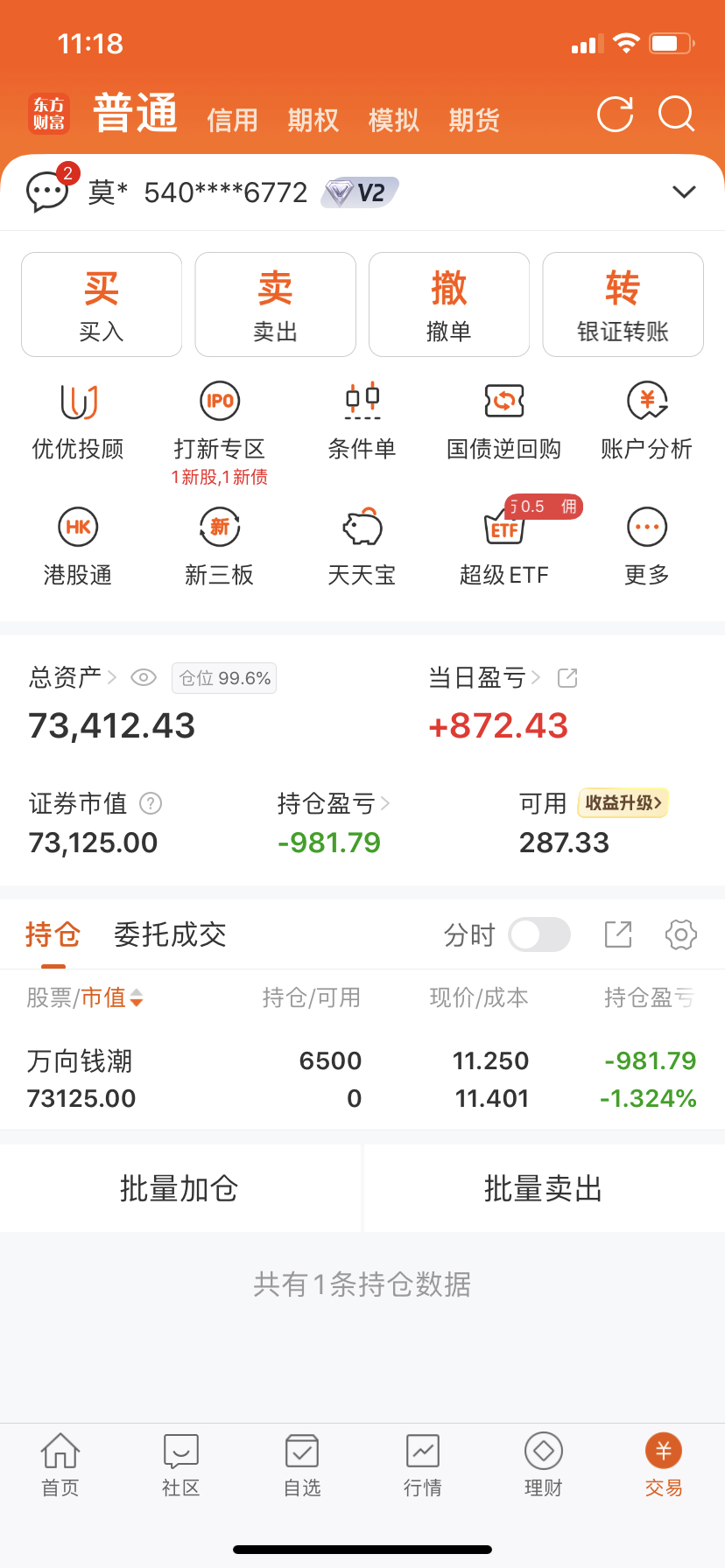 $万向钱潮(SZ000559)$ 主力行行好涨涨吧
