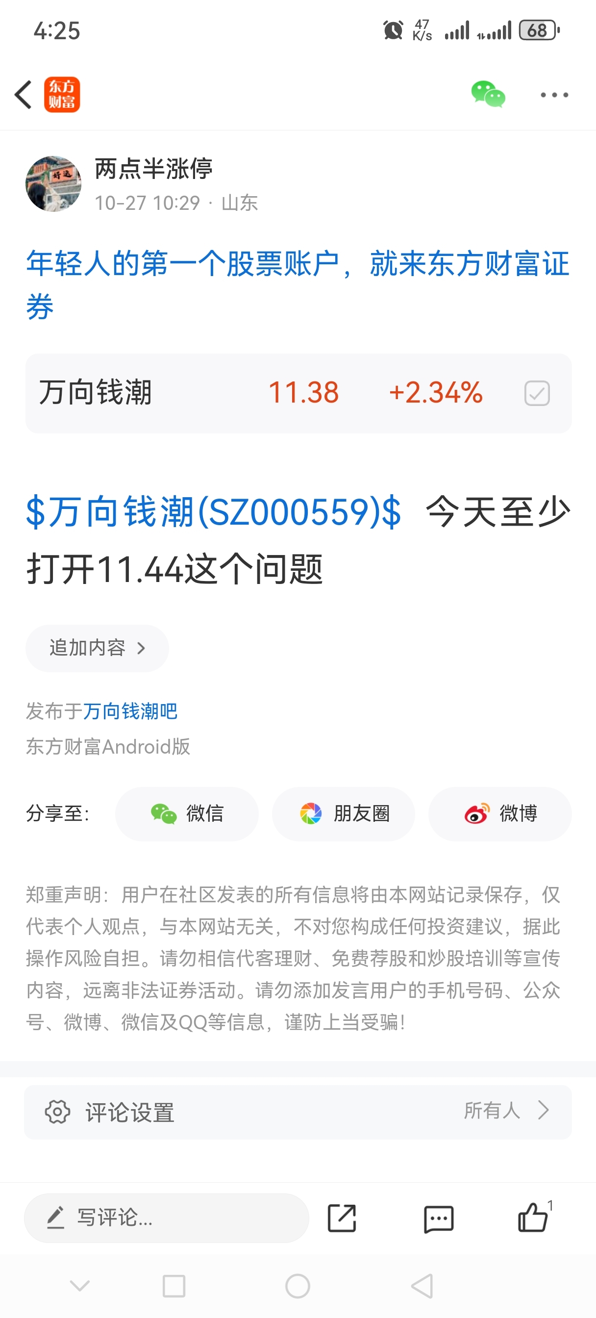 温馨提示: 1.根据《证券法》规定,禁止编造、传播虚假信息或者误导性信息,扰乱证券市场;2.用户在本社区发表的所有资料、言论等仅代表个人观点,与本网站立场无关,不对您构成任何投资建议。用户应基于自己的独立判断,自行决定证券投资并承担相应风险。《东方财富社区管理规定》