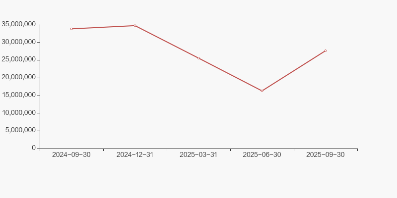 万向钱潮2025年10月28日在三季度报告中披露,截至2025年9月30日公司股东户数为27.79万户,较上期(2025年6月30日)增加13.1万户,增幅达89.20%。