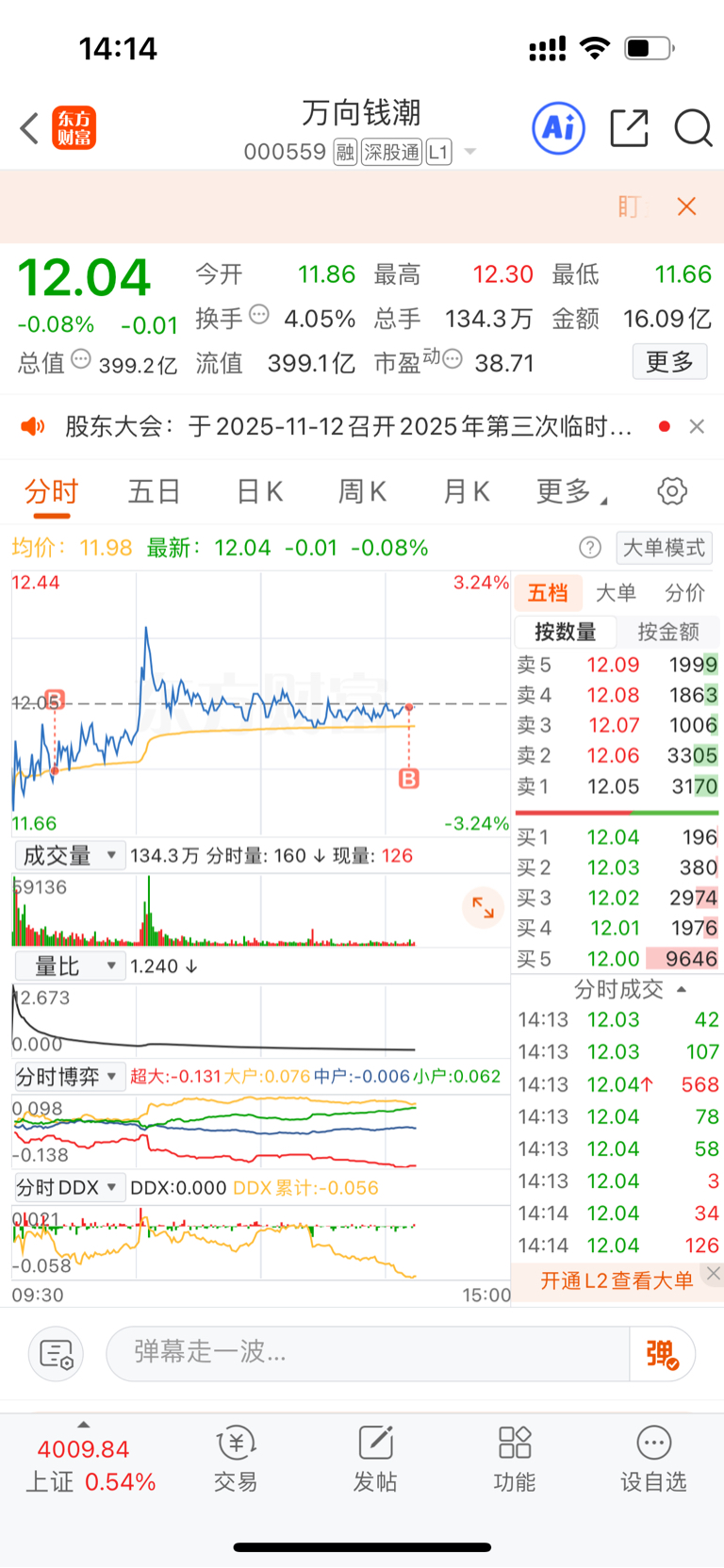 $万向钱潮(SZ000559)$ 加仓,相信就不要怕