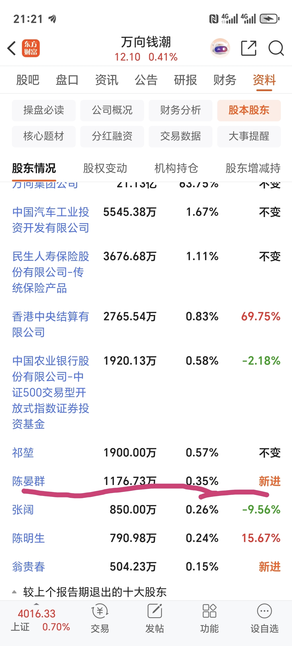 $万向钱潮(SZ000559)$ 9月30日那天砸盘的不是群总,三季报出来给群总洗刷冤屈了,群总在里面被套牢了,目前还剩有1.3+个小目标。坚信待到天时地利人和之时,群总会带我们解套的!