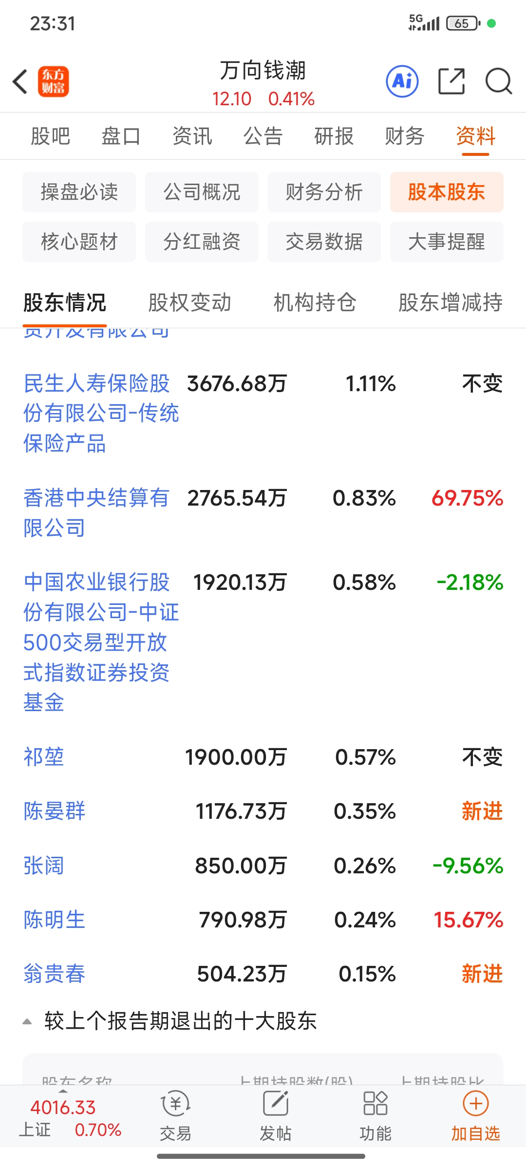 $万向钱潮(SZ000559)$ 群总成了十大股东了
