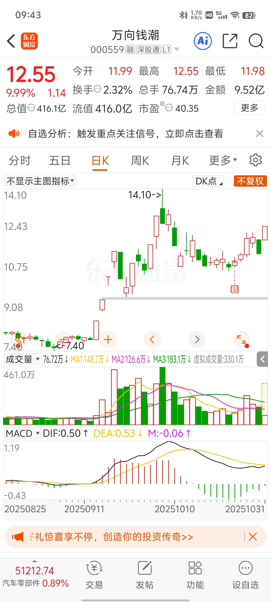 $万向钱潮(SZ000559)$ 差一点被洗走