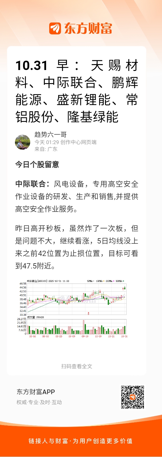 昨日高开秒板,虽然炸了一次板,但是问题不大,继续看涨,5日均线没上来之前42位置为止损位置,目标可看到47.5附近。