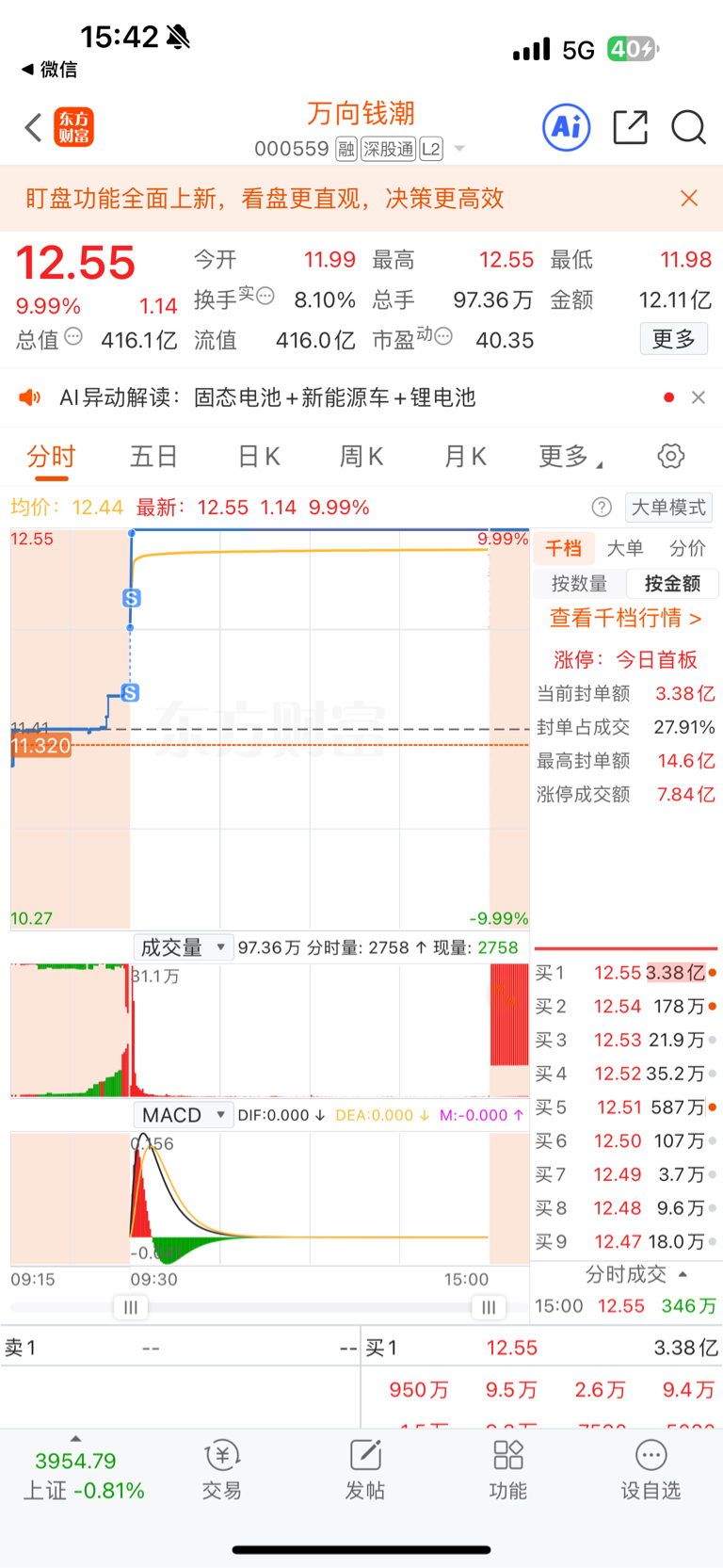 $万向钱潮(SZ000559)$  卖飞了, 下周一还能上车吗