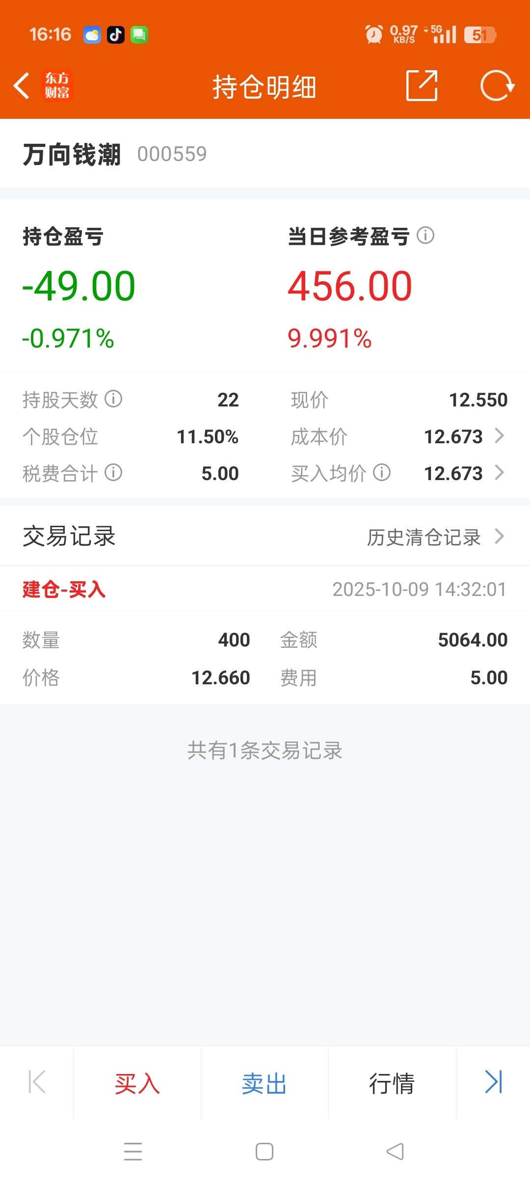 $万向钱潮(SZ000559)$  当初咬着后槽牙重仓梭哈,拿了一个月,亏50