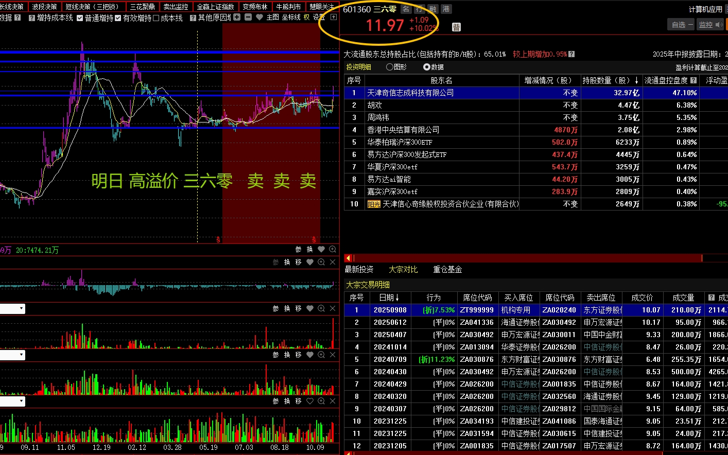 超跌601360三六零明日高溢价只要不增量放出上周五涨停倍量找点出货获利了结点到