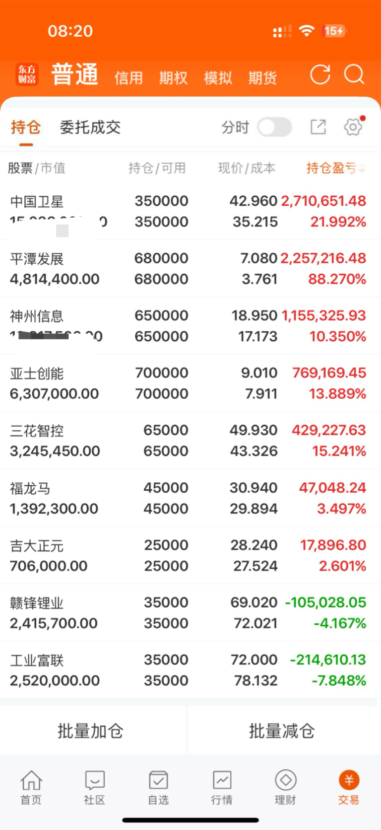 目前持仓:中国卫星继续铆钉五日线、高抛低吸降低成本