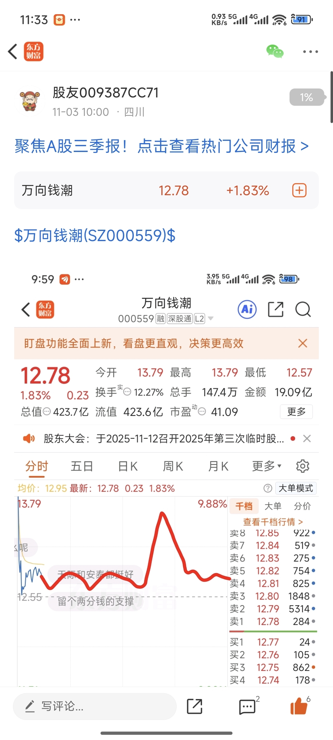 $万向钱潮(SZ000559)$ 下午如果有拉升,逃命机会,没有自求多福