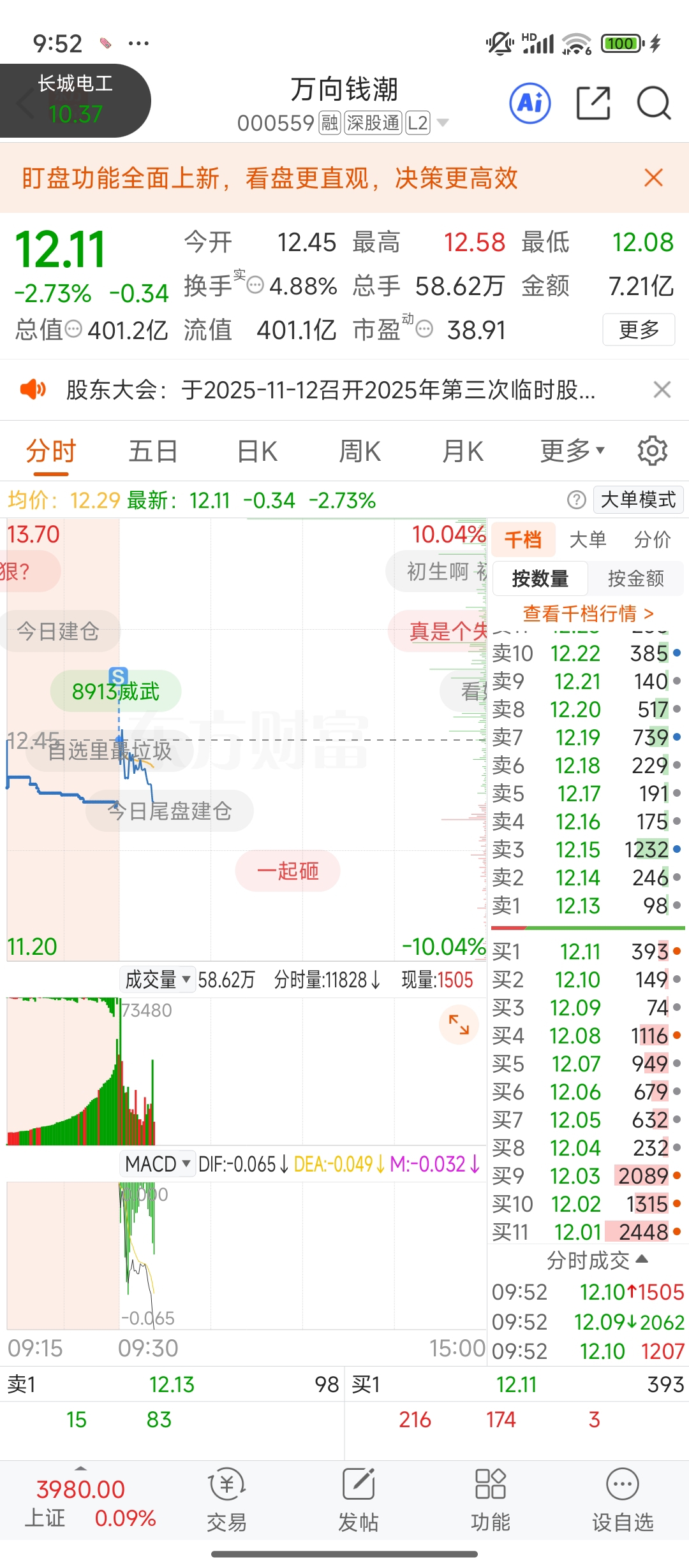 $万向钱潮(SZ000559)$ 家人们你们还好吗