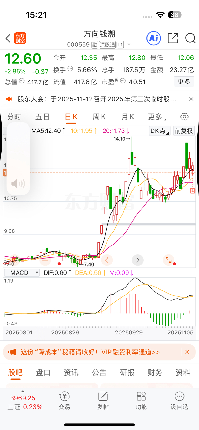 $万向钱潮(SZ000559)$ 我刚来,我也要吃肉,不要套我。