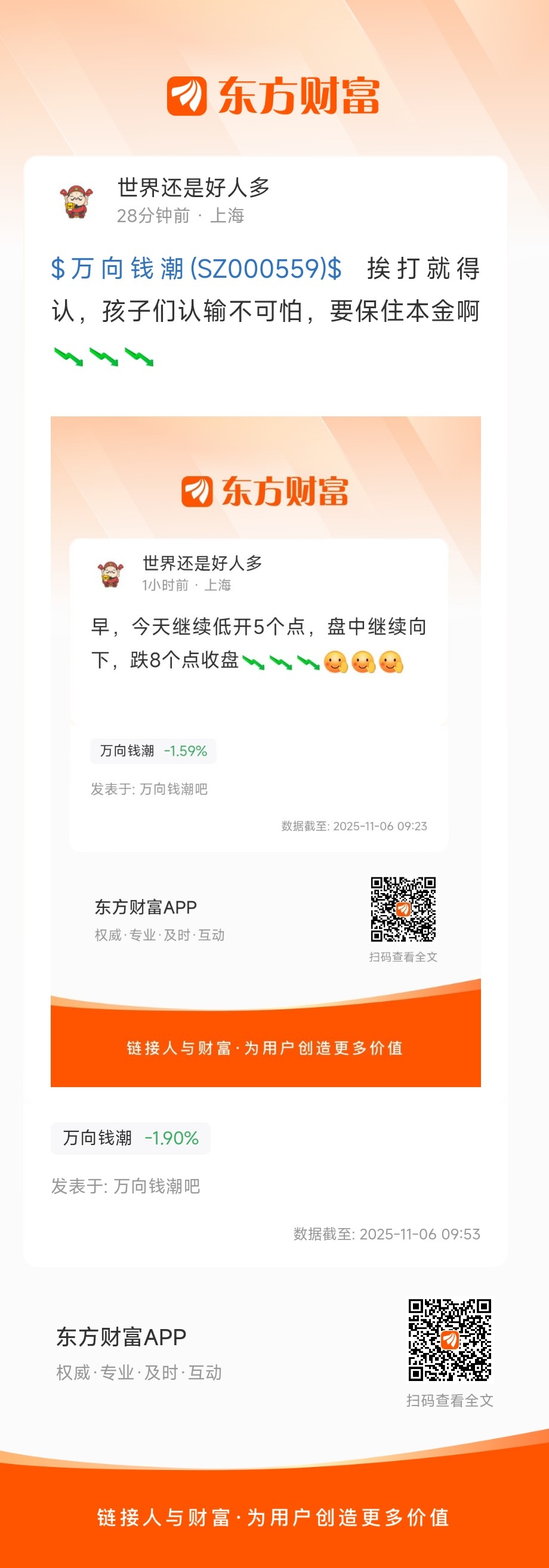 $万向钱潮(SZ000559)$ 趋势已坏,勿抱幻想,保本出货,平稳落地