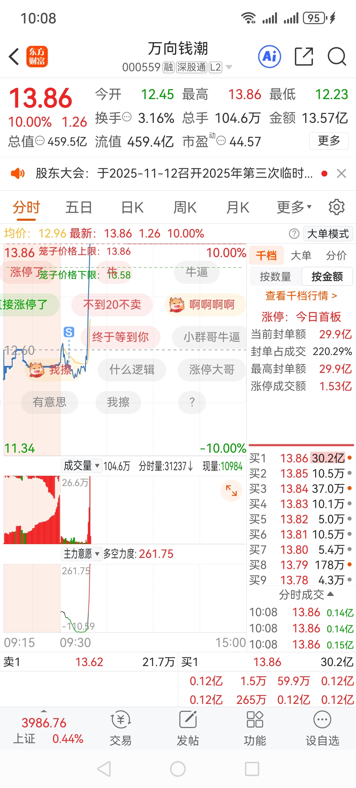 $万向钱潮(SZ000559)$ 就差我这点三瓜两枣吗?