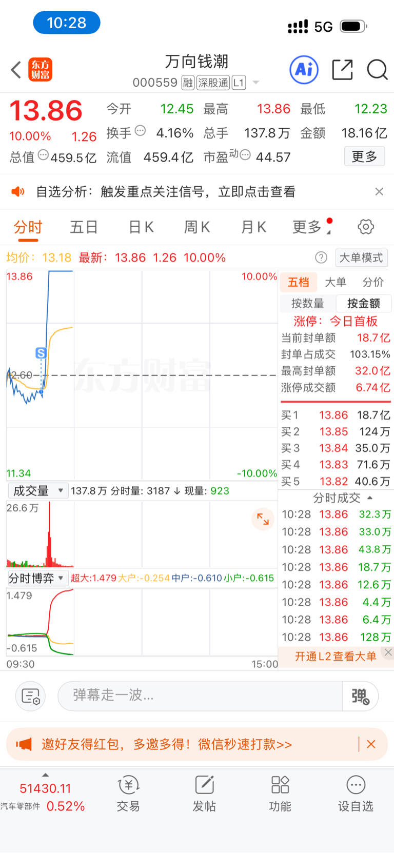$万向钱潮(SZ000559)$ 哈哈哈哈