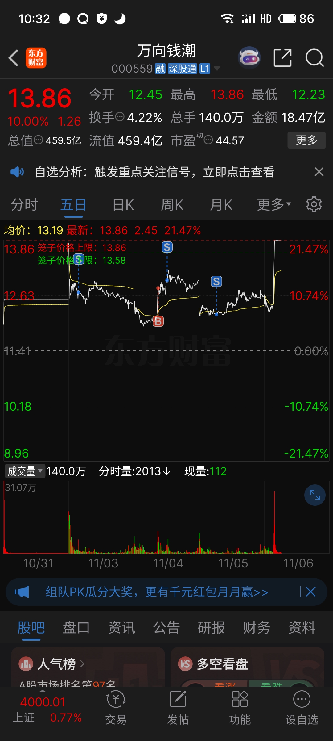 $万向钱潮(SZ000559)$ 妥妥的韭菜