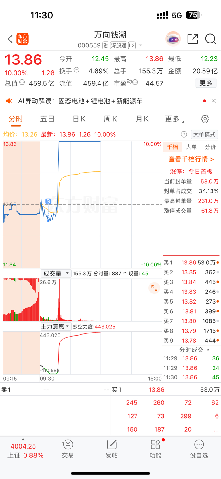 $万向钱潮(SZ000559)$ 比吃了三斤还难受