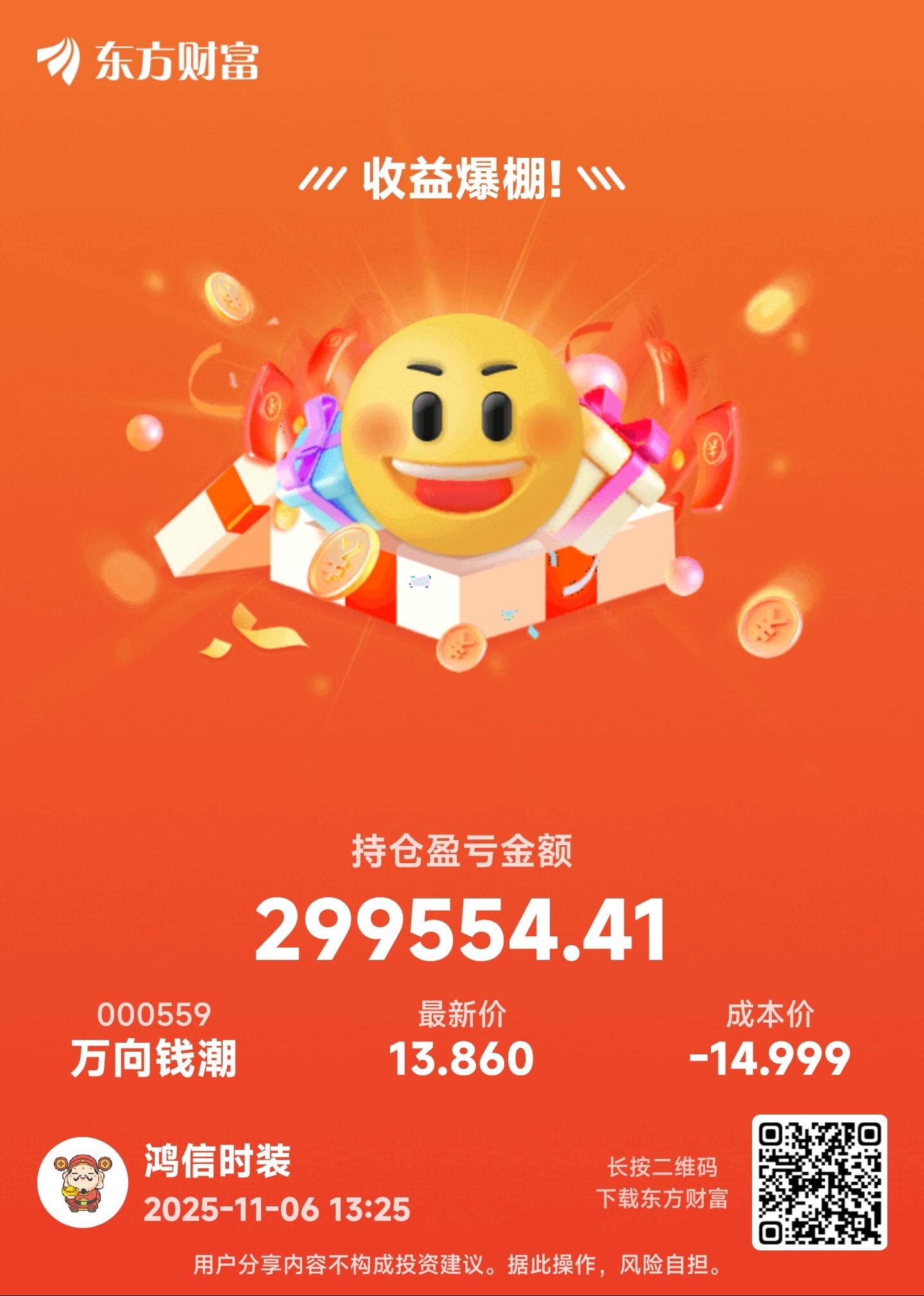 $万向钱潮(SZ000559)$ 留着一点暂时不卖了