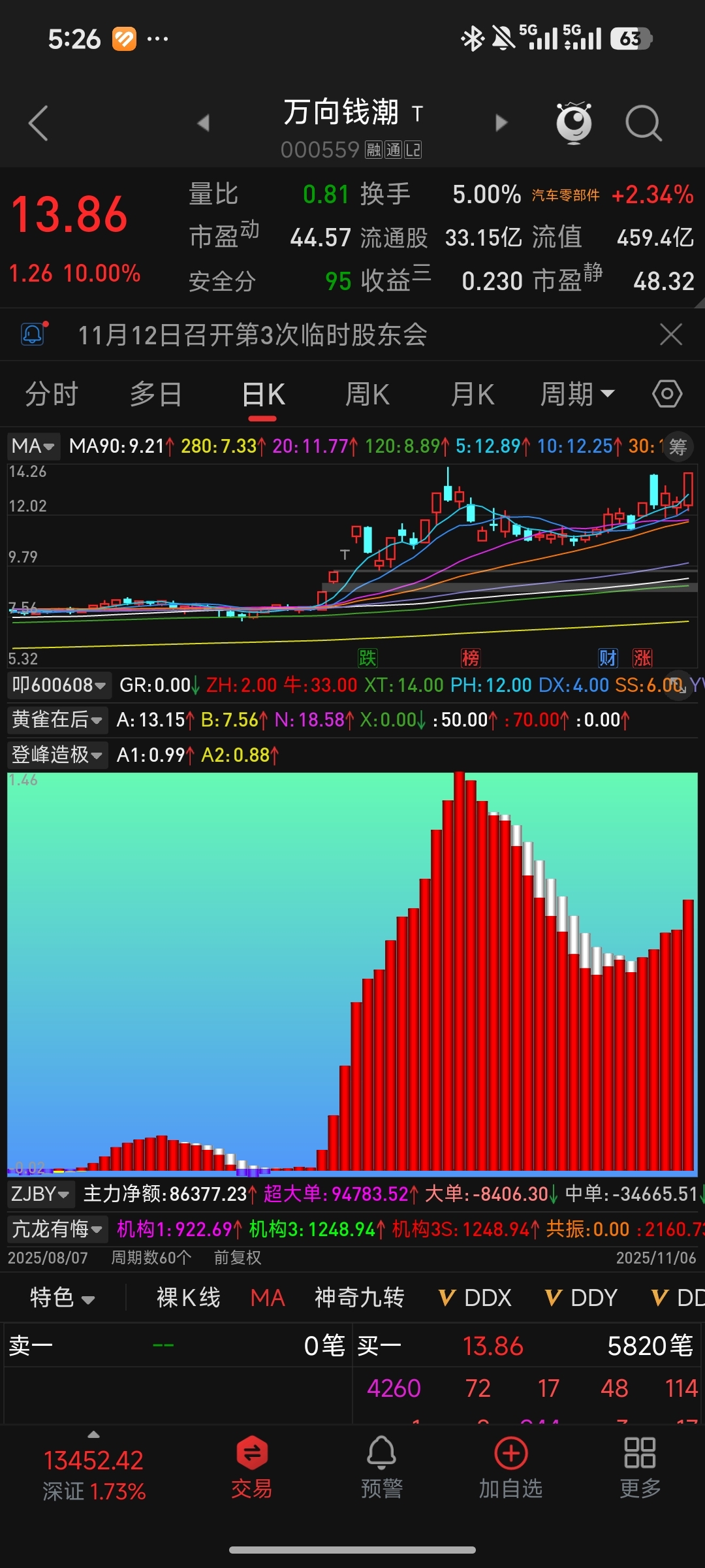 $万向钱潮(SZ000559)$ 5000票唯一之万向钱潮,大家看一下持股指标之一:登峰造极。
