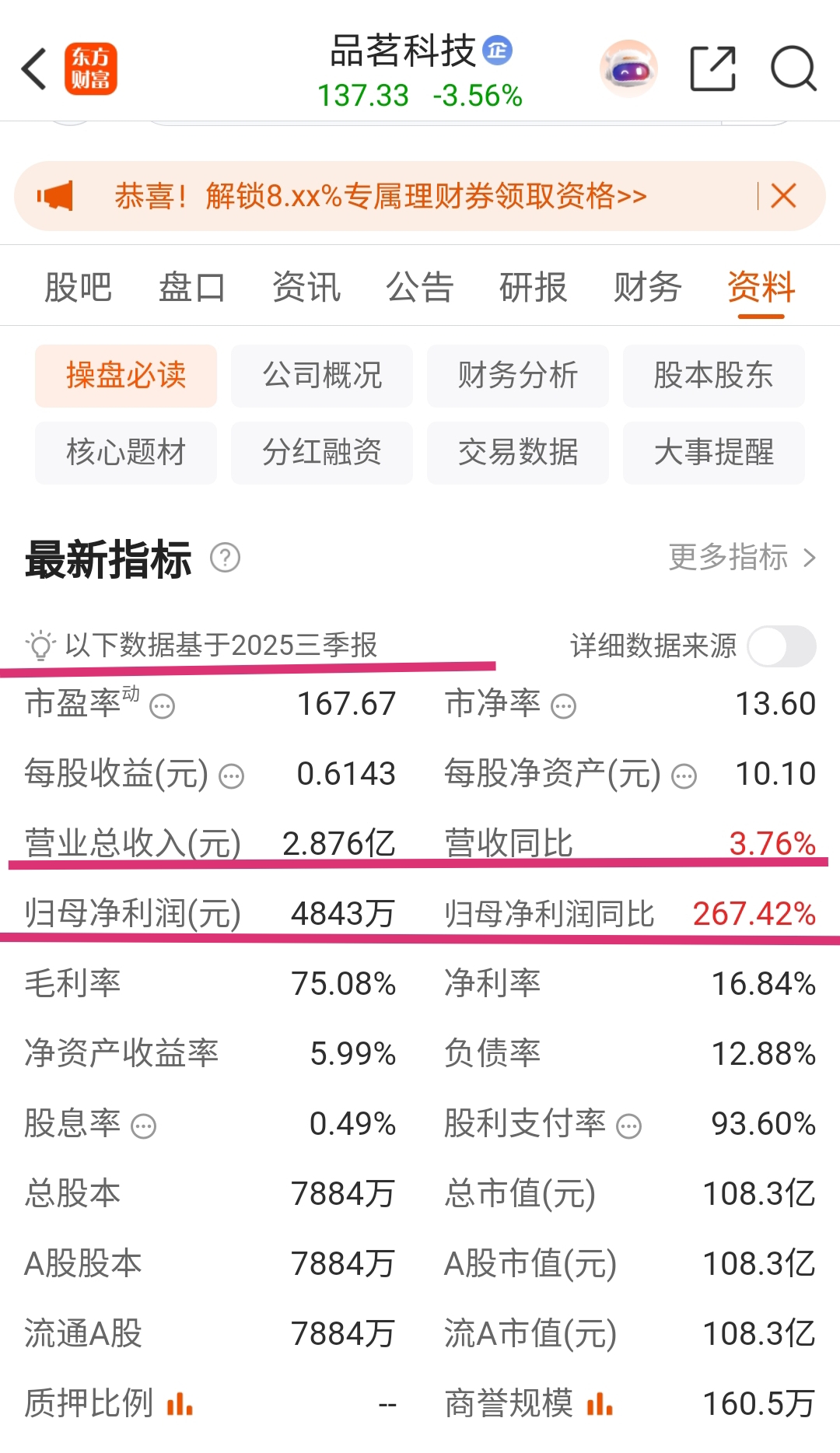 同业竞争对手品茗科技(688109.SH)2021年3月上市至今约四年半运行均价39.97元/股,现股价137.33元/股(总市值108.27亿元)。