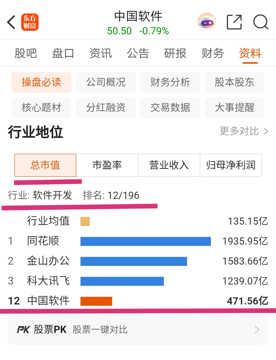 2025年三季报净利润3.11亿元,行业排位为12/196,2025年11月6日总市值排在行业12位的中国软件(600536.SH)总市值471.56亿元。