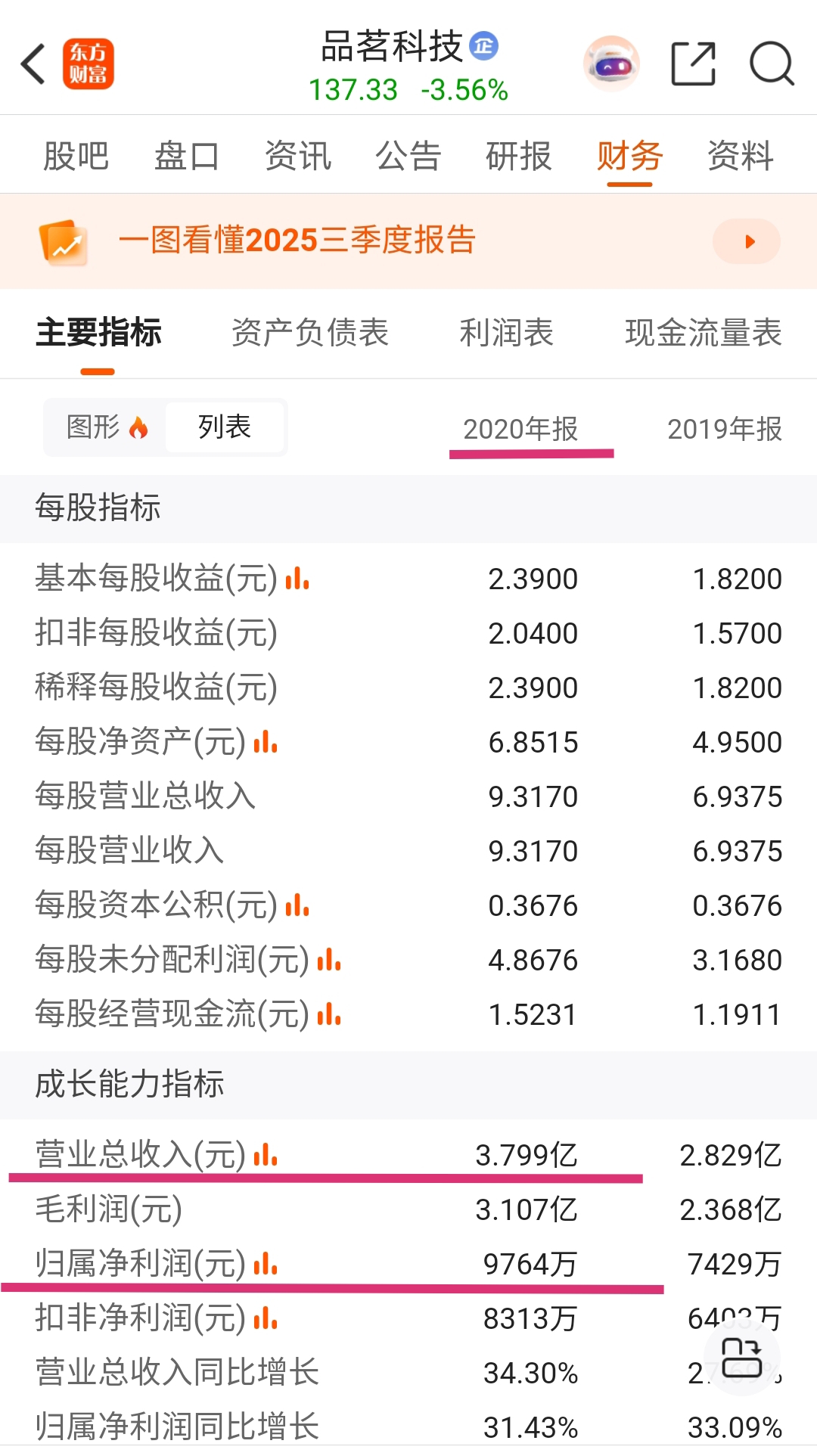 品茗科技2021年3月上市之时对应的报表季是2020年年报,广联达2020年营业收入40.05亿元是同业竞争对手品茗科技2020年营业收入3.799亿元的10.54倍,广联达2020年归属净利润3.304亿元是同业竞争对手品茗科技2020年归属净利润9764万元的3.38倍。