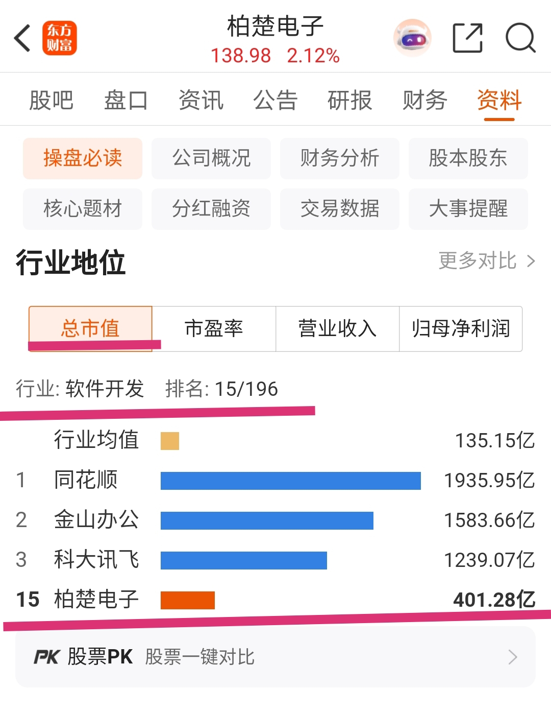 2025年三季报营业收入42.94亿元,行业排位为15/196,2025年11月6日总市值排在行业15位的柏楚电子(688188.SH)总市值401.28亿元。