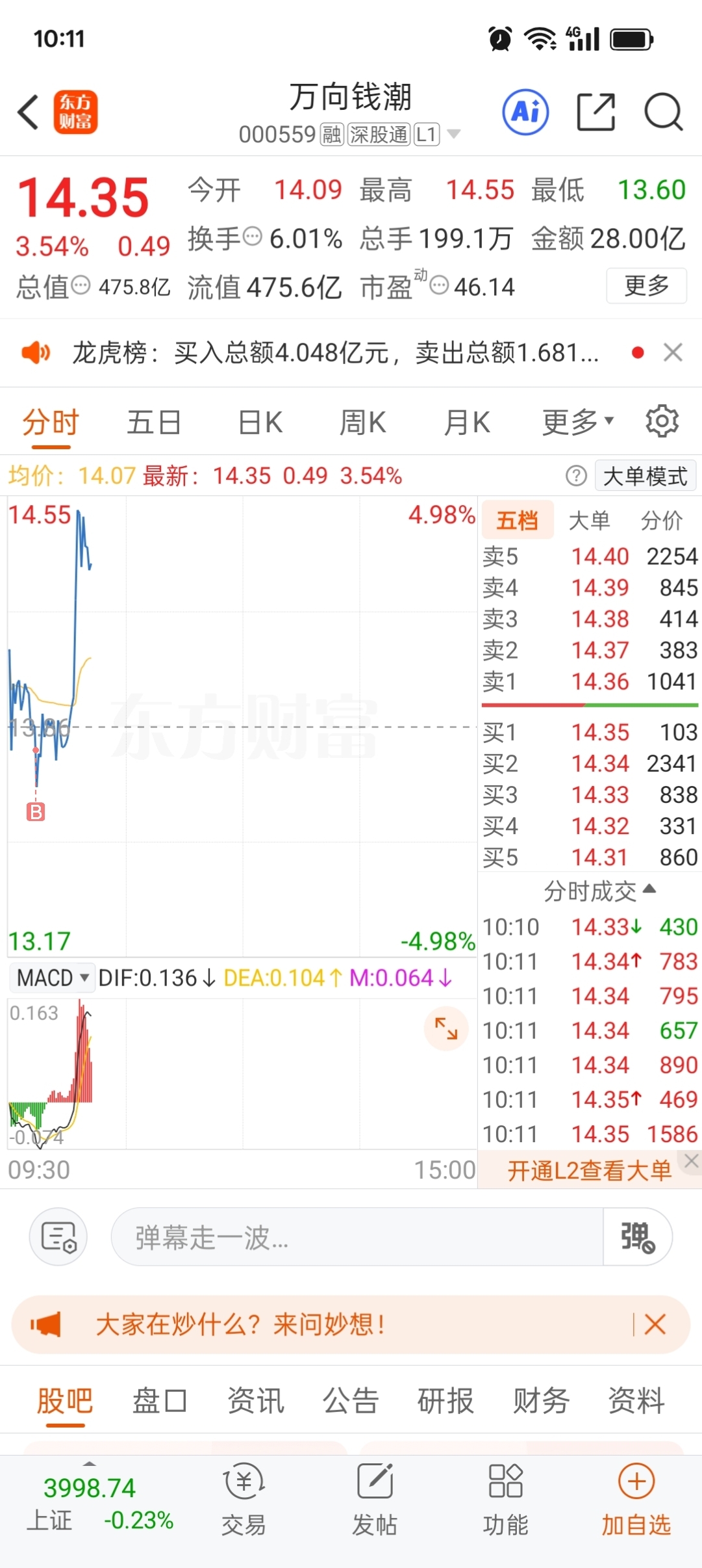 $万向钱潮(SZ000559)$ 快快冲到顶