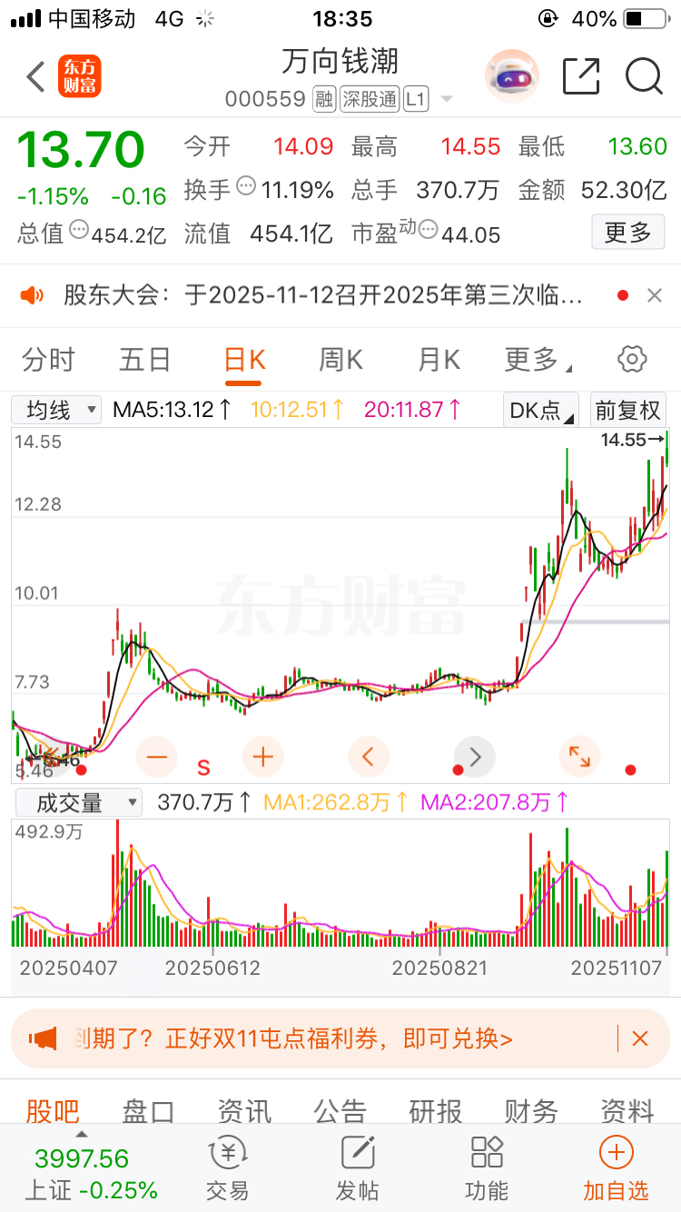 人气排名挺热的,万向钱潮这支票先观望,不要追,跌了也不能捡便宜,最佳策略就是等大