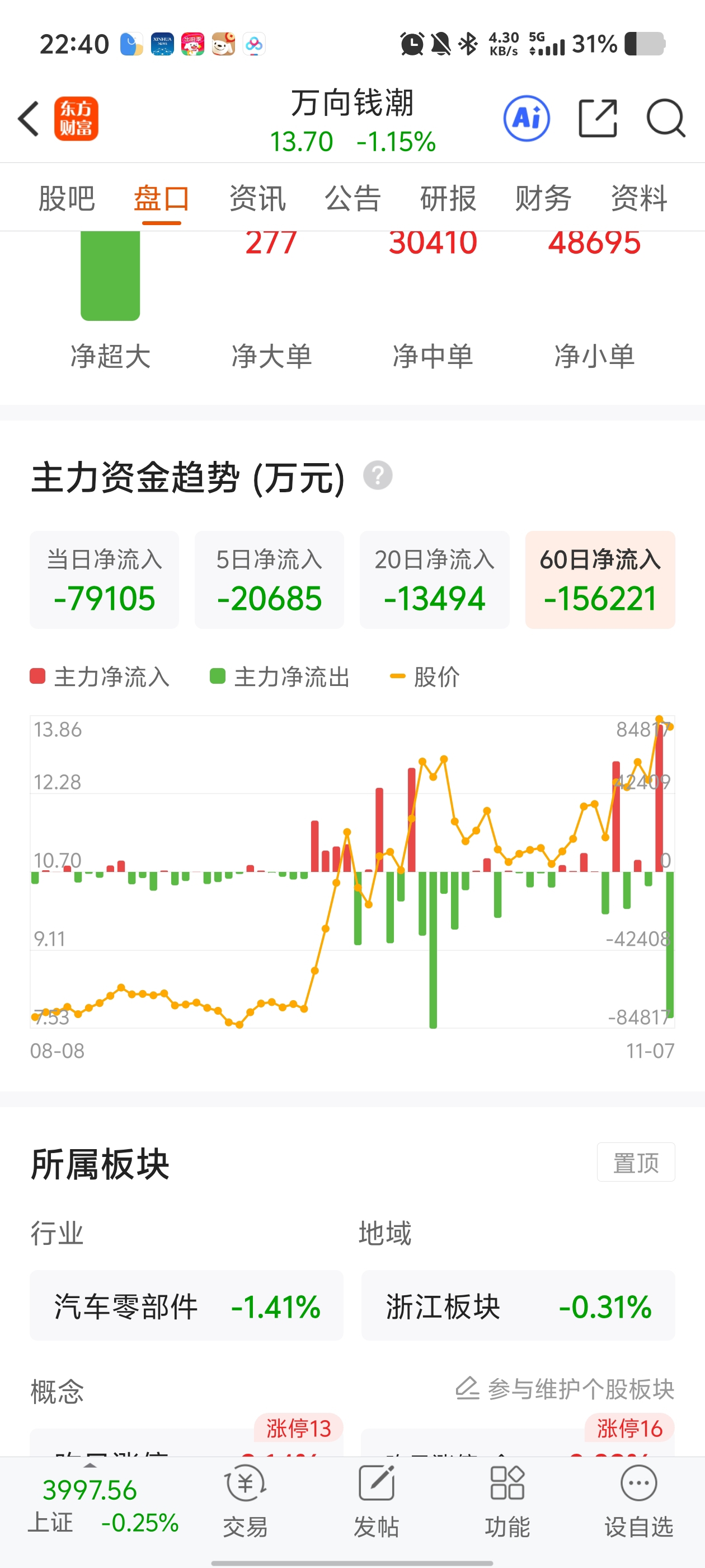 $万向钱潮(SZ000559)$ 博弈激烈,大资金进进出出