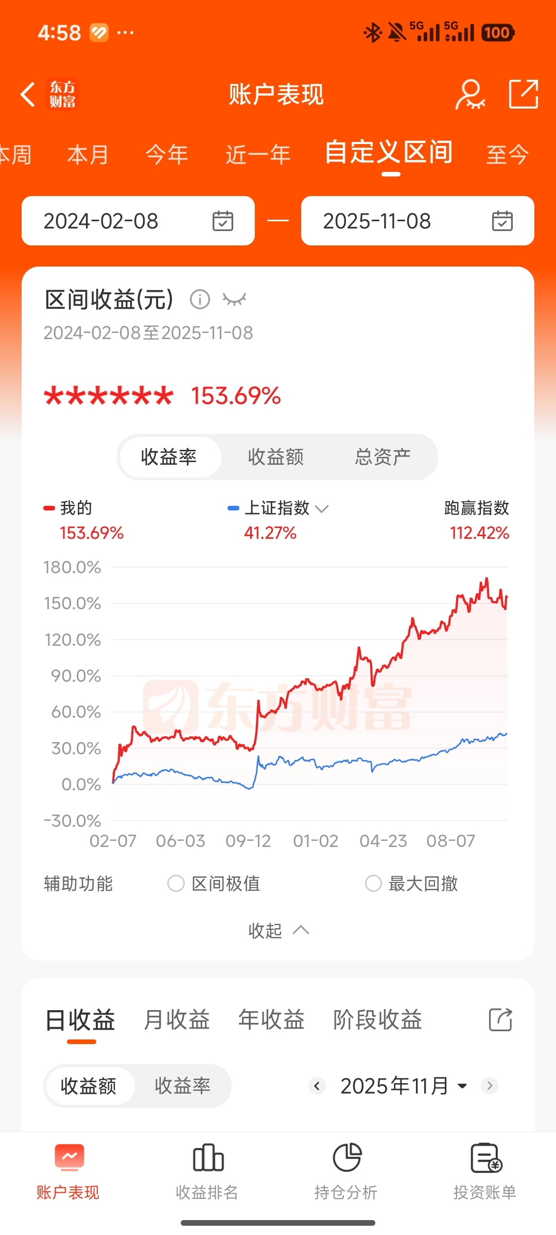 从10月份开始,市值曲线随大盘回调,没能继续升势,加油,希望年内能创新高。