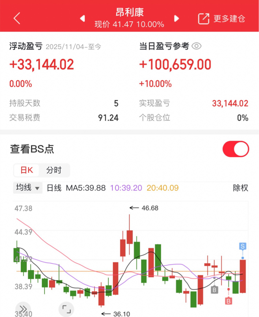 早盘情绪还是比较强的,但实际就两个高位在打,都是需要拼头铁的存在,次一点的就是中位的摩恩。其它高位都是被反推的,过于被动且弱势,合适的参与点是很少的。题材上化工、消费、旅游、白酒这些避险的比较活跃,科技线大跌。临近收盘又回流了电力这边,电力这边近期持续活跃,但都走不强,适合高抛低吸不适合追。$万向钱潮(SZ000559)$ 下午买入,$昂利康(SZ002940)$ 落袋为安
