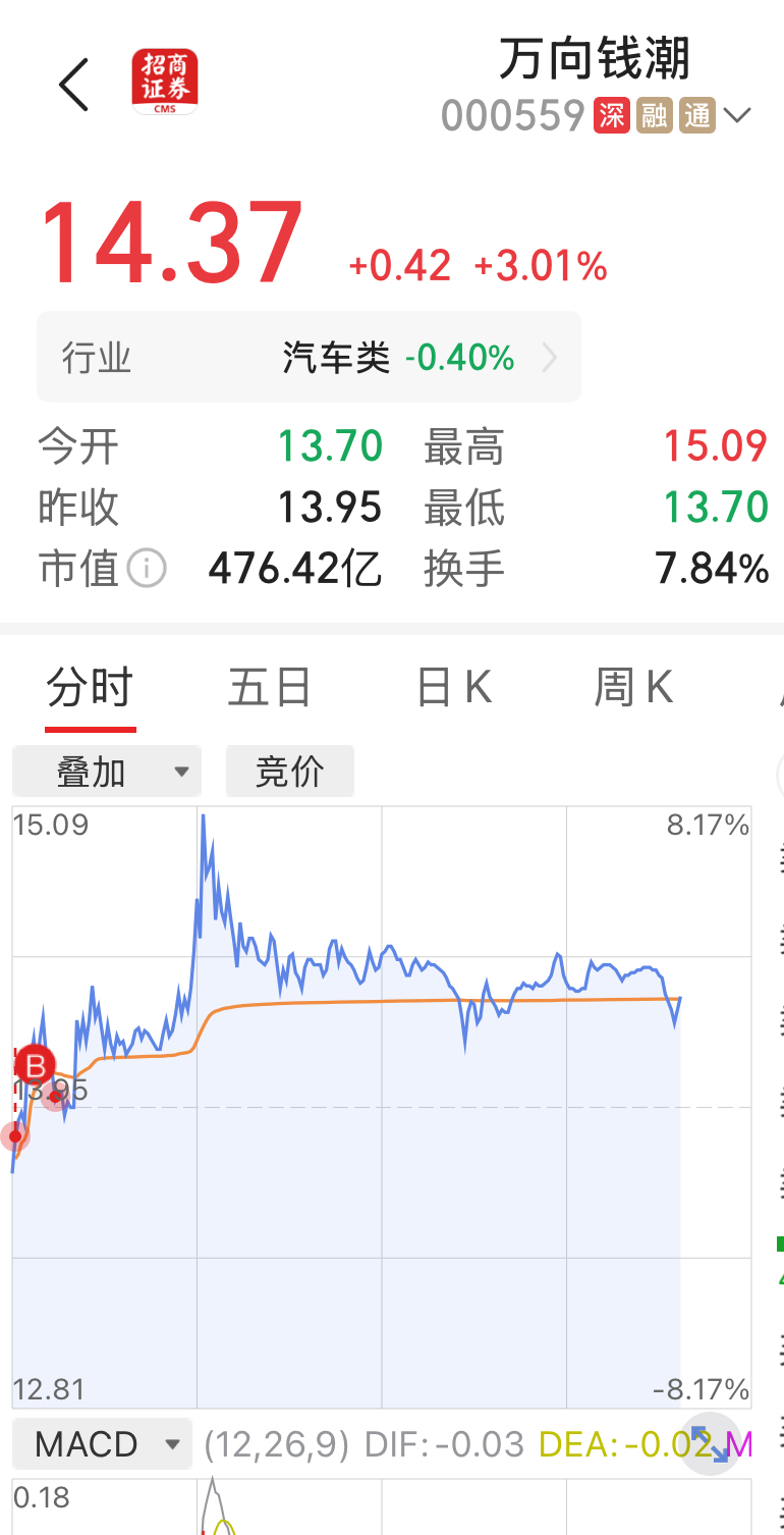 $万向钱潮(SZ000559)$ 上午冲击涨停,以为捡了个大漏,不知道明天能不能平安出来