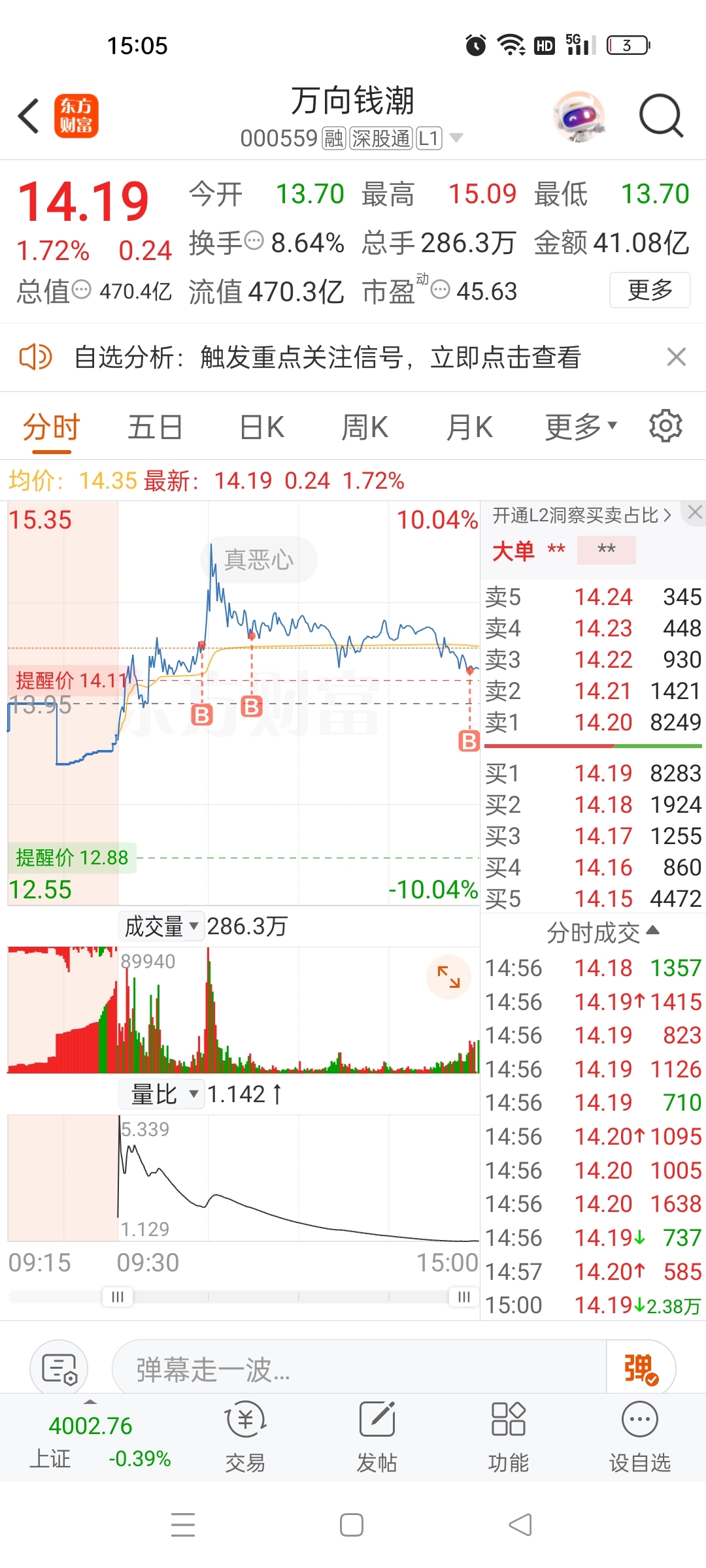 $万向钱潮(SZ000559)$ 最后几百股没了,不喜欢留