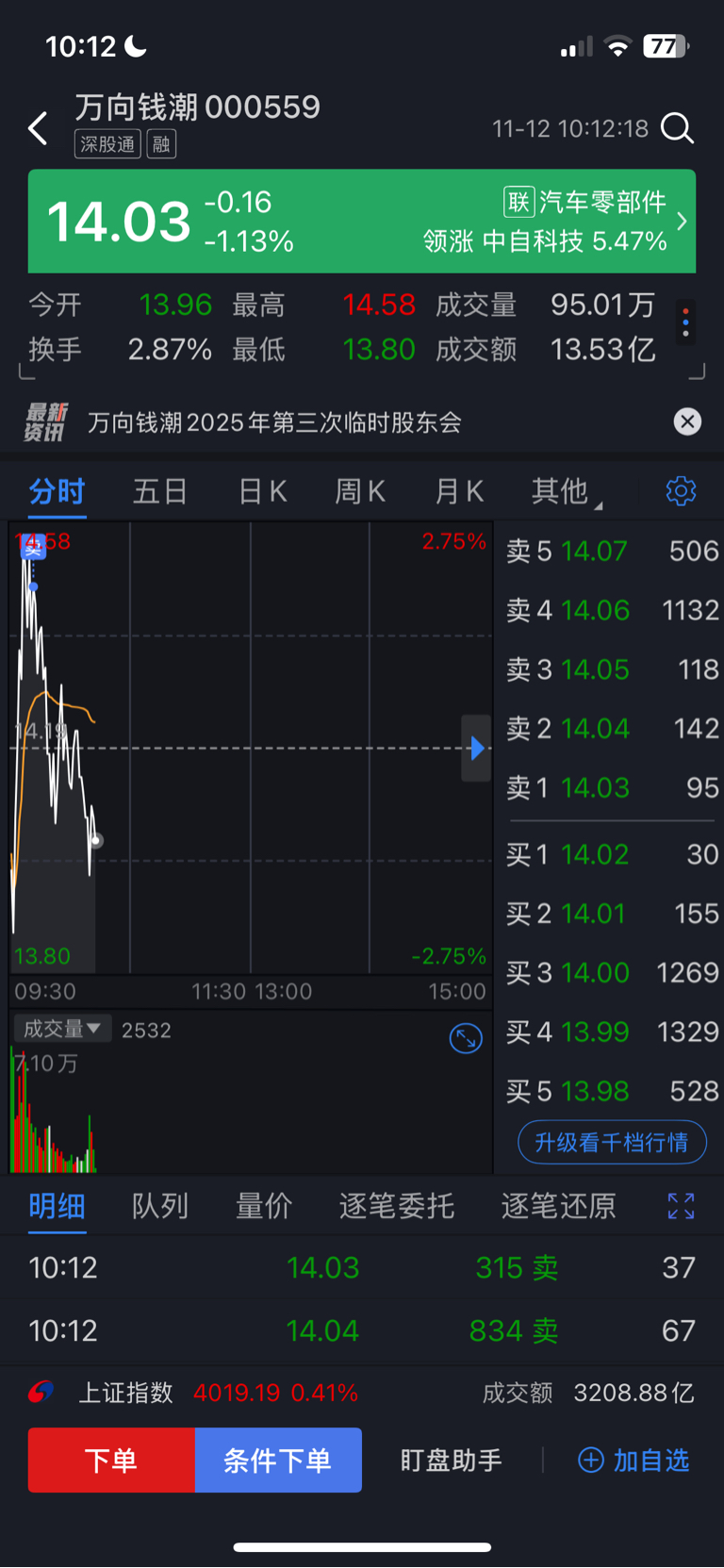 $万向钱潮(SZ000559)$ 主力我出了、稍微盈利一点点、你可以拉了、不拉看不起你!