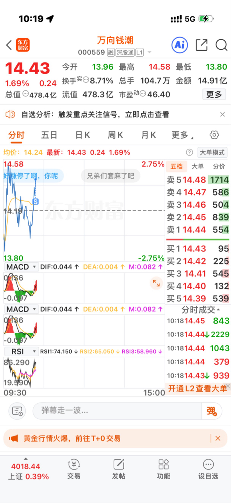 $万向钱潮(SZ000559)$ 跑了,太吓人了