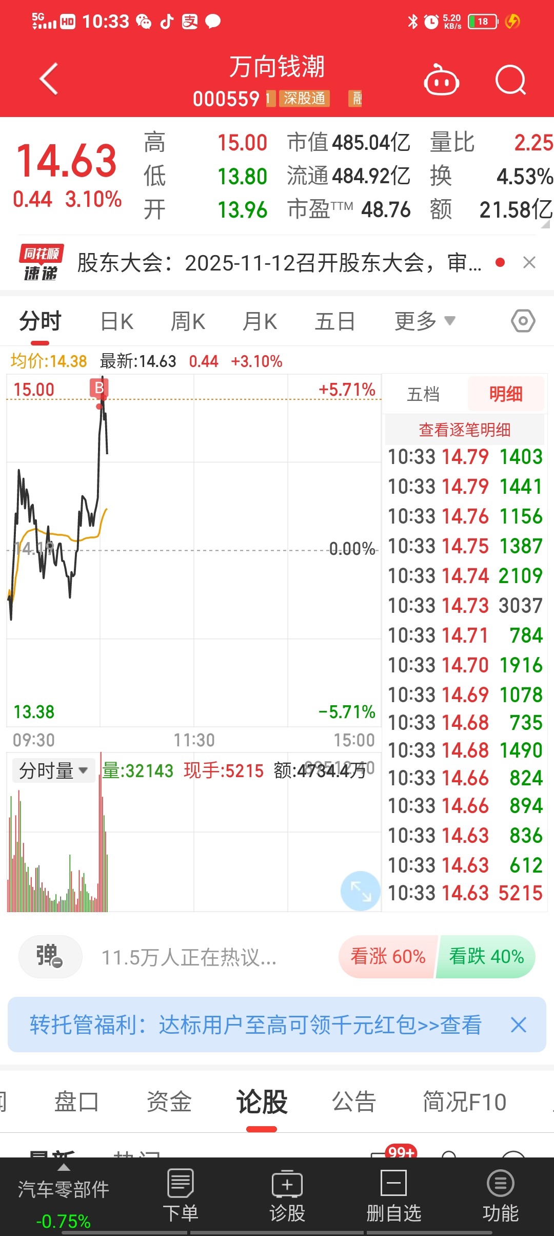 $万向钱潮(SZ000559)$ 完蛋了,又是追在最高点,买啥都是最高点