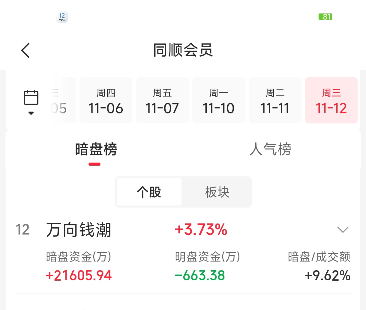 $万向钱潮(SZ000559)$ 暗盘大量资金流入